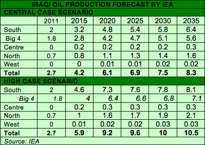 The International Energy Agency estimates that Iraq could double its existing production to 6.1-million barrels per day by 2020, in its central, or likely, case scenario.