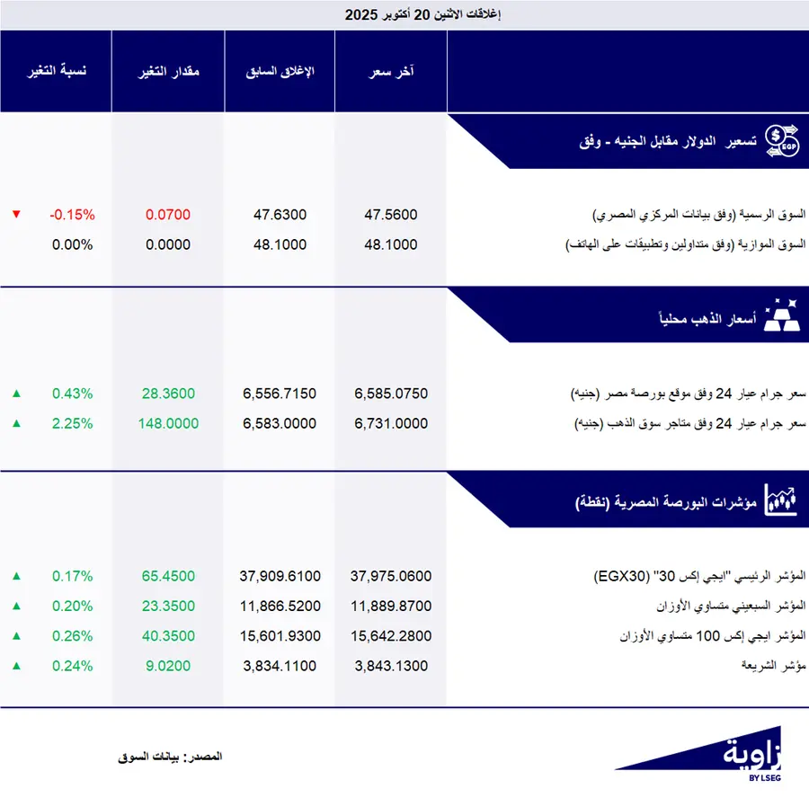 وفي السوق الموازية، بلغ في المتوسط نحو 47.25 جنيه للشراء و 48.10 جنيه للبيع، وفق متداولين وتطبيقات على الهاتف.