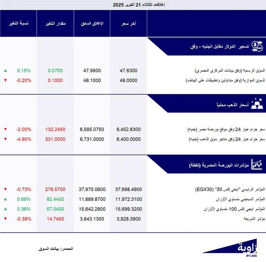 وفي السوق الموازية، بلغ في المتوسط نحو 47.15 جنيه للشراء و 48 جنيه للبيع، وفق متداولين وتطبيقات على الهاتف.
