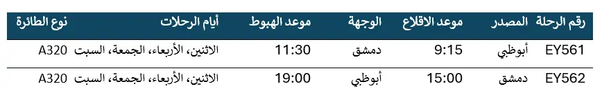 جدول الرحلات بين أبوظبي ودمشق اعتباراً من 12 يونيو 2026