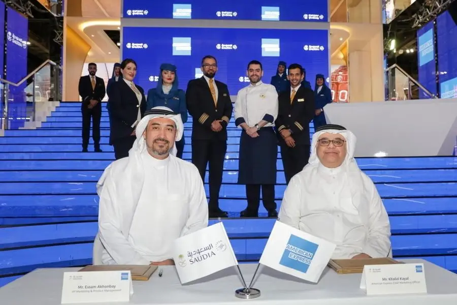 جاء ذلك خلال الاتفاقية التي وقعها كل من نائب الرئيس للتسويق وإدارة المنتج بشركة الخطوط السعودية للنقل الجوي عصام محمد اخونباي والرئيس التنفيذي للتسويق بشركة أمريكان إكسبريس السعودية خالد محمد كيال، خلال أيام معرض سوق السفر العربي المقام في دبي.