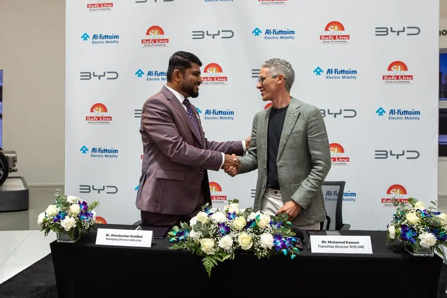 دبي، الإمارات العربية المتحدة - أعلنت "بي واي دي"، الشركة الرائدة عالمياً في تصنيع مركبات الطاقة الجديدة، اليوم عن توقيع مذكرة تفاهم استراتيجية مع مجموعة سيف لاين، الرائدة في قطاع التوزيع الكهربائي والميكانيكي بدولة الإمارات العربية المتحدة.