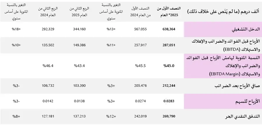 أبرز النتائج المالية والتشغيلية للنصف الأول من العام 2025