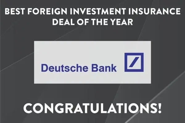 وحازت دويتشه بنك (Deutsche Bank) على جائزة أفضل صفقة تأمين على الاستثمار الأجنبي لهذا العام لترتيبها تسهيلات مرابحة سلعية لمدة سبع سنوات بقيمة 149 مليون يورو، بتكليف من وزارة المالية والميزانية في جمهورية كوت ديفوار، لتمويل إنشاء وتوسعة مستشفيات إقليمية في كونغ وأوديين. تغطي بوليصة المؤسسة للتأمين على عدم الوفاء بالالتزامات المالية السيادية 95% من رأس المال والأرباح، مما يقلّص مخاطر المشروع ويتيح توفير 377 سريراً إضافياً.