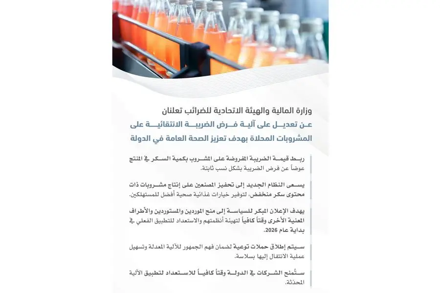 وأكدت وزارة المالية أن هذا النموذج المطور يعكس التزام الدولة بتبني أدوات مالية وتشريعية مرنة تدعم أنماط الحياة الصحية، من خلال ربط النظام الجديد للضريبة بمستوى التأثير الصحي المرتبط بكمية السكر في المنتج، بدلاً من الاعتماد فقط على تصنيفه.