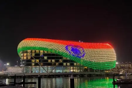 أبوظبي، الإمارات العربية المتحدة : أضاءت جزيرة ياس، الوجهة الترفيهية الرائدة في أبوظبي، معالمها السياحية بألوان العلم الهندي احتفاءً بالذكرى الخامسة والسبعين لاستقلال الهند الذي يصادف 15 أغسطس 2021.