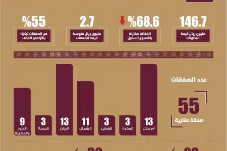 تنفيذ 55 صفقة بقيمة 146.7 مليون ريال خلال الأسبوع الرابع من ديسمبر