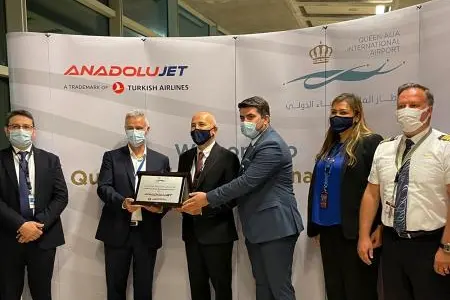 وبهذه المناسبة، قال نيكولا كلود، الرئيس التنفيذي لـ "مجموعة المطار الدولي": "سعداء باستقبال أولى رحلات طيران أناضول جت، تزامنًا مع إجراءات الحكومة في التخفيف التدريجي للقيود وإعادة فتح القطاعات والأنشطة الحياتية المختلفة، مما سيساعد في نهاية المطاف على استعادة الثقة بالسفر الجوي. هذه الخطوة، ستساهم في إعادة إنشاء شبكتنا الجوية تدريجيًا، وتزويد المسافرين بخيارات سفر أوسع، كما ستعمل بشكل مباشر على تحفيز السياحة، وتعزيز مكانة مطار الملكة علياء الدولي كمكان آمن للمسافرين والموظفين – بوصفه البوابة الجوية الرئيسية للأردن على العالم".