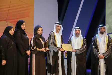 و قام الشيخ محمد بن سعود القاسمي رئيس دائرة المالية المركزية والشيخ سلطان بن أحمد القاسمي، رئيس مركز الشارقة الإعلامي، بتسليم الجائزة إلى سعادة الدكتور يوسف محمد السركال الوكيل المساعد لقطاع المستشفيات في وزارة الصحة ووقاية المجتمع، وبحضور وداد بوحميد مدير إدارة الاتصال الحكومي والدكتورة سمية البلوشي مدير إدارة التمريض.