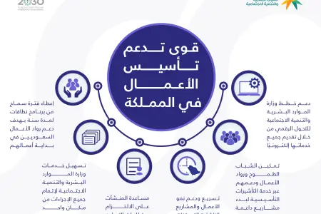 وأشارت الوزارة إلى أنها تعمل على دعم رواد الأعمال والمستثمرين في إطلاق أعمالهم من خلال خدماتها الإلكترونية الفورية بداية من خدمة "فتح ملف منشأة" التي تمكن لصاحب العمل الاستفادة من كافة الخدمات فورًا، وصولًا إلى بقية الخدمات التي تسهل لهم الحصول على احتياجاتهم من القوى العاملة دون الحاجة إلى زيارة فروع الوزارة أو الحاجة إلى أوراق أو خطابات.