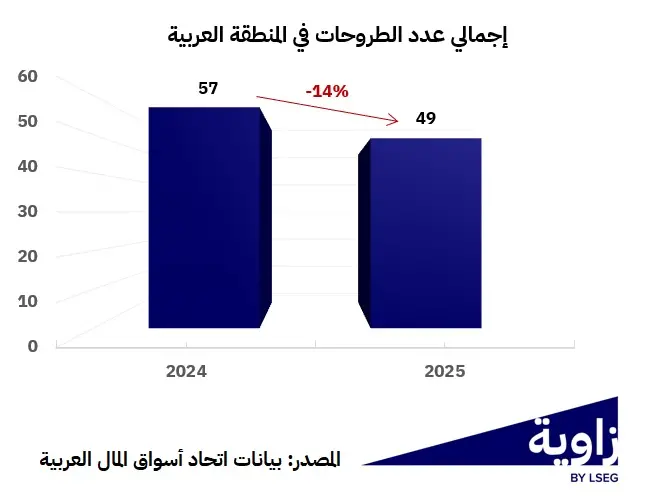 شهد نشاط الطروحات الأولية للاكتتاب العام في المنطقة العربية تباطؤ في 2025 بعد عام 2024 الاستثنائي.