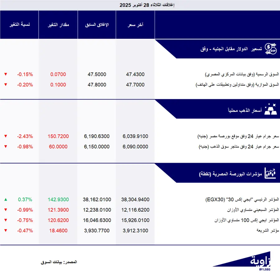 فيما تراجع سعر الدولار الرسمي، إلى نحو 47.3 جنيه للشراء و47.4 جنيه للبيع، وفق بيانات بنوك محلية.