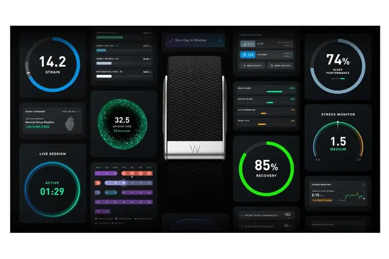 تعتبر WHOOP شركة أمريكية رائدة في مجال التقنيات الصحية، تقدم منصة قائمة على الاشتراك تعتمد على أجهزة قابلة للارتداء توفر مراقبة مستمرة للمؤشرات الحيوية وتوجيهات مخصصة. وتشمل عضوية WHOOP جهازاً متطوراً يعمل على مدار الساعة ببطارية تدوم حتى 14 يوماً، إلى جانب تطبيق متقدم، وإمكانية الوصول إلى بيانات دقيقة وقابلة للاستخدام في مجالي الصحة واللياقة البدنية، بما في ذلك تتبع نبض القلب وتباين معدلاته، ومعدل التنفس، ونسبة الأكسجين في الدم، ودرجة حرارة الجلد، وجودة النوم، بما يتيح تقديم إرشادات صحية ذكية تشمل النوم والتعافي ومستويات الجهد واللياقة وطول العمر. كما تتضمن المنصة خصائص متقدمة تشمل تخطيط القلب (ECG) المعتمد من إدارة الغذاء والدواء الأمريكية، وميزة "Healthspan"، و"Blood Pressure Insights"، وبرنامج "Advanced Labs" لتحليل المؤشرات الحيوية عبر اختبارات الدم. وتشير الدراسات إلى أن المستخدمين الذين يرتدون WHOOP يومياً يسجلون أكثر من 90 دقيقة إضافية من التمارين أسبوعياً، ويحصلون على أكثر من ساعتين إضافيتين من النوم، مع تحسن بنسبة 10% في تباين معدل ضربات القلب.