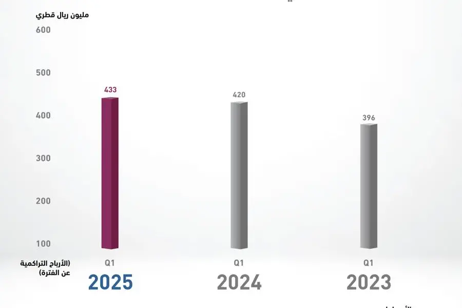 - صافي الربح: 433 مليون ريال قطري، بنسبة زيادة 3.2%.