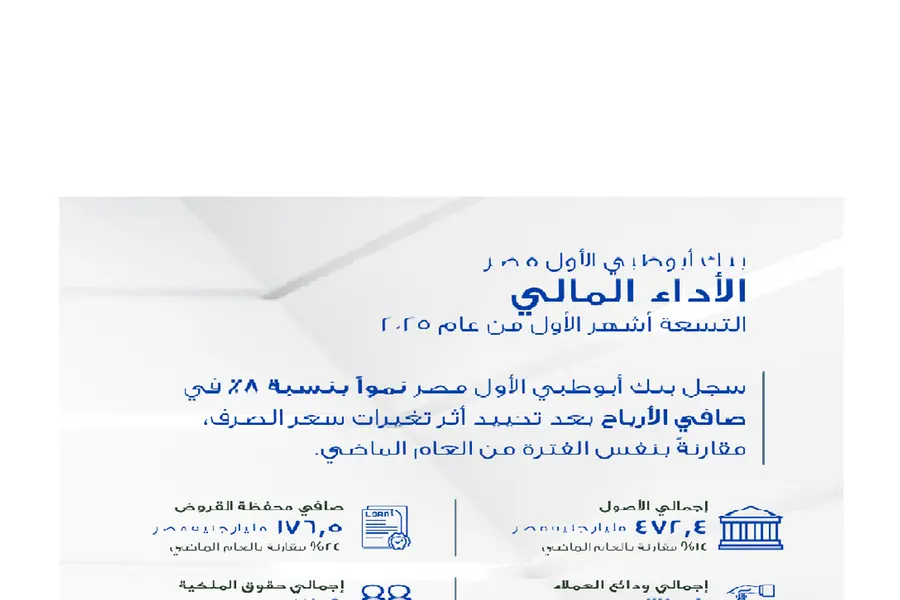 القاهرة: أعلن بنك أبوظبي الأول مصر، أحد أكبر البنوك العاملة في السوق المصرية، عن نتائجه المالية للتسعة أشهر من عام 2025، محققًا أداءً قويًا في عملياته المصرفية الأساسية، حيث سجل البنك نموًا بنسبة 8% في صافي الأرباح بعد تحييد أثر تغيرات سعر الصرف ليصل إلى 13.2 مليار جنيه مصري مقارنةً بالفترة نفسها من العام الماضي، وهو ما يعكس كفاءة تشغيلية عالية ونجاح الاستراتيجية المعتمدة لتعزيز القيمة المستدامة من العمليات الأساسية.