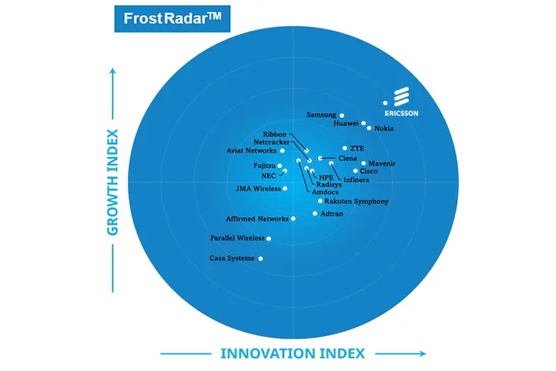 وتتضمن محفظة إريكسون الشاملة منتجات وحلولاً تغطي شبكات النفاذ اللاسلكي التقليدية، وشبكات النفاذ الراديوي المفتوحة والافتراضية، والشبكات الأساسية والطرفية، والشبكات الخاصة. وتتوقع فروست آند سوليفان تحولاً نحو شبكات النفاذ الراديوي المفتوحة والافتراضية في جميع أنحاء القطاع، كما تشير أبحاثها إلى أن دخول إريكسون إلى مجال حلول شبكات النفاذ الراديوي المفتوحة سيساعد على تحقيق ذلك الأمر، لا سيما وأن عملاءها الأوائل هم من كبار مزودي خدمات الاتصالات حول العالم.
