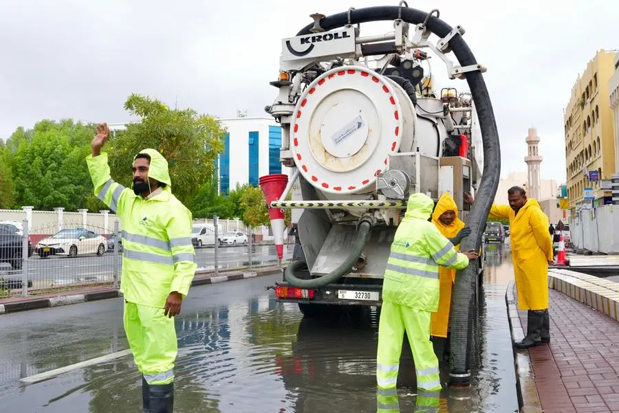 وحرصت بلدية دبي على ضمان استمرارية عمل جميع محطات الصرف الصحي وتصريف مياه الأمطار والاستجابة الفورية لتجمعات مياه الأمطار، وانسدادات شبكات التصريف من خلال الإدارة الذكية والتعامل الفني والتقني، وتحويل التدفقات بين محطات الضخ والبحيرات التجميعية، فضلاً عن التعامل مع المخلفات المتراكمة، وآثار انجراف التربة إلى الطرق، وإزالة الأشجار المتساقطة بما يضمن انسيابية الحركة.