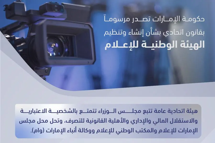 وتحل الهيئة، وفق أحكام المرسوم بقانون، محل كل من: مجلس الإمارات للإعلام، والمكتب الوطني للإعلام ووكالة أنباء الإمارات (وام) في كافة الاختصاصات والحقوق والالتزامات والتشريعات المتعلقة بها، بما في ذلك الحقوق والالتزامات الواردة في أية عقود أو اتفاقيات أو مذكرات تفاهم.