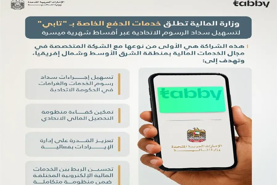 دبي: أعلنت وزارة المالية عن إطلاق خدمات الدفع الخاصة بـشركة تابي، لتوفر للمتعاملين خاصية دفع رسوم الخدمات والغرامات الاتحادية بالتقسيط من خلال قنوات الدفع المعتمدة على مبدأ "اشترِ الآن وادفع لاحقاً"، حيث تعد هذه الشراكة الأولى من نوعها مع الشركة المتخصصة في مجال الخدمات المالية بمنطقة الشرق الأوسط وشمال إفريقيا.