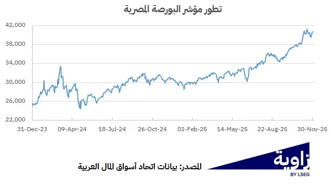 برزت البورصة المصرية كواحدة من أقوى الأسواق أداءً في المنطقة خلال نوفمبر. في الواقع، ارتفع مؤشر EGX30 بنسبة 6.5% خلال الشهر، مدعوم بتحسن السيولة، وتجدد اهتمام المستثمرين المحليين والأجانب بالشراء، إضافةً إلى الزخم القوي في عدد من القطاعات القيادية.