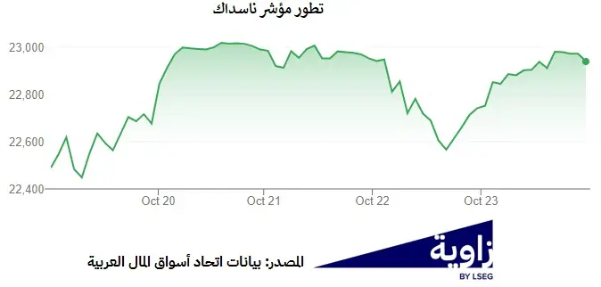 وتخلل الأسبوع فترة هدوء بين 22 و23 أكتوبر مع ظهور مؤشرات على إرهاق المشترين، وتزامن هذا مع تصاعد المخاوف بشأن صحة قطاع البنوك الصغيرة الأمريكية.