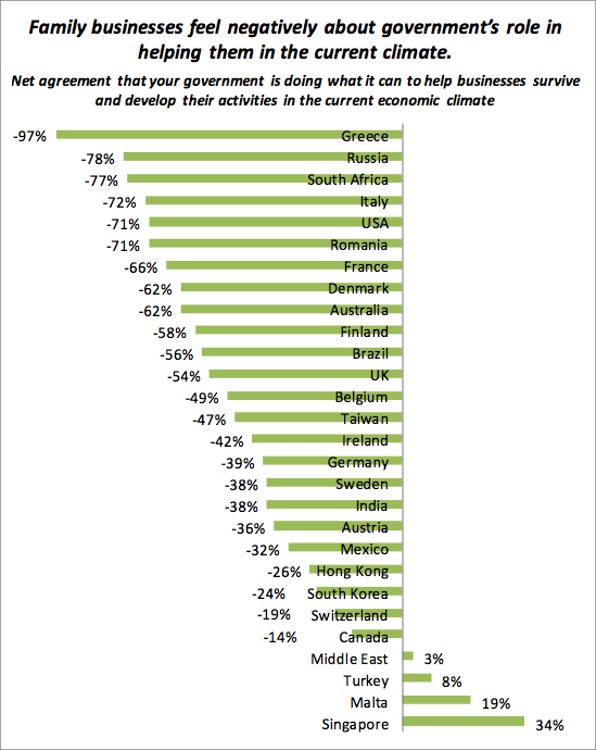 Very few family businesses believe their governments are helping them in the current global economic climate. Only 3% of Middle East businesses survey said the government is playing a role in their success.