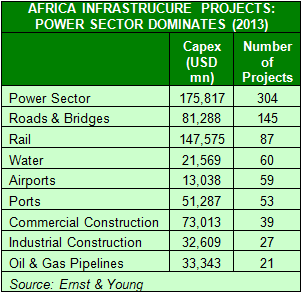 "Growing energy demand, regulatory and social reforms and the need for infrastructure investment have seen Africa become one of the world's top energy investment destinations. Infrastructure spending hit USD 700 billion in 2012, with the power sector accounting for 25%, or USD 176 billion, of this investment," E&Y noted from the latest available figures.