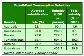 Central Asian states are on the same growth trajectory. Rising populations and economic growth means fossil fuel energy subsidies are becoming difficult to justify for many countries.
