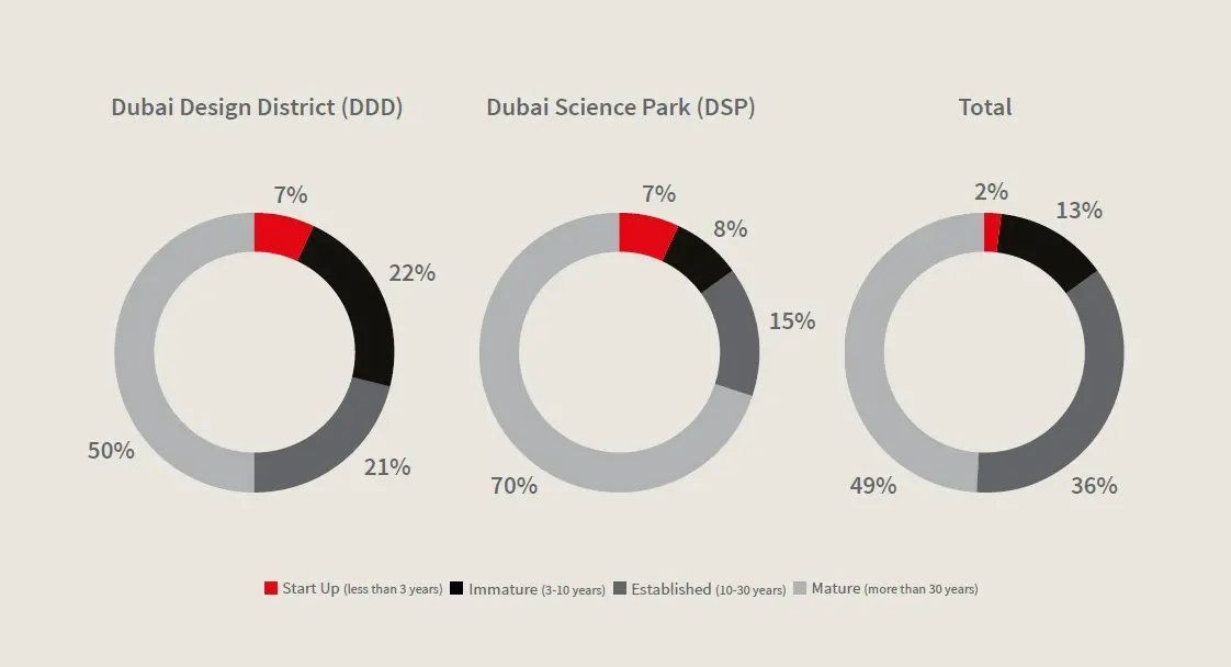 In its report analysing the impact of the digital economy on Dubai's office market, JLL found that 85 percent of space it analysed (both onshore and free zone) in the Dubai office market was taken by companies that are more than 10 years old. Around 49 percent of space was taken by companies that are more than 30 years old, and only 2 percent was taken by start-ups (classified as less than three years old).