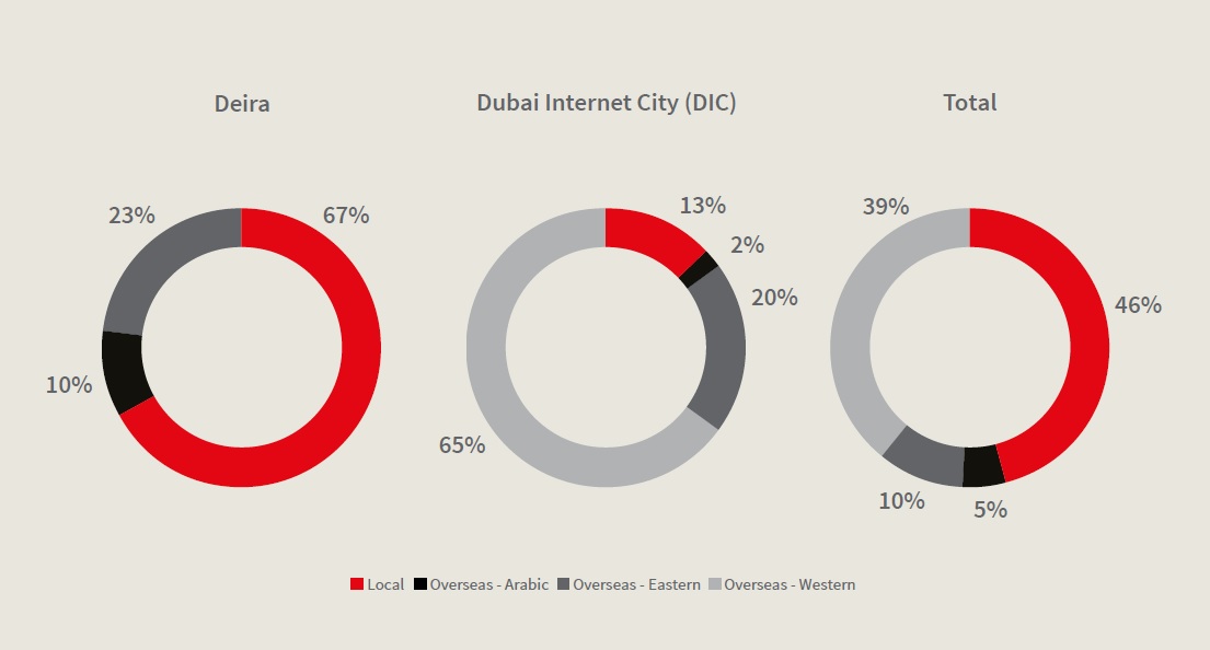 Origin of Dubai companies based on space occupied (Source: JLL)