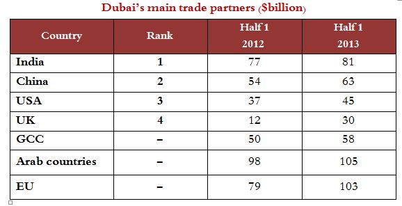 The report stated that India is the largest trading partner of Dubai, where trade between them amounted to between Dh81 billion; China comes in second place (63 billion dirhams), then the USA in third place (45 billion dirhams). In fourth place comes the UK (30 billion dirhams).