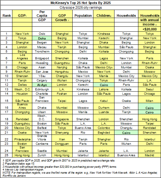 Doha, Cairo and Al Ain - yes, Al Ain - are among McKinsey's picks of the world's top city spots by 2025 by various measures.