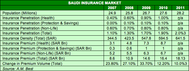 "Whilst the MENA insurance markets have experienced double-digit premium growth in recent years, the pace of growth has slowed in 2011 and 2012, with most markets expected to achieve increases in total gross premiums written (GPW) of less than 5% this year," noted ratings agency A.M. Best in a report.