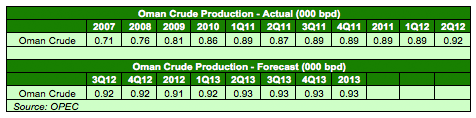 "Oman has thus far implemented a successful program to reverse the decline in production, deploying some of the most sophisticated methods of oil extraction," notes the U.S. Department of Energy. "Oil production in Oman has increased by more than 24 percent over the past four years, from a low of 714,000 bbl/d in 2007.