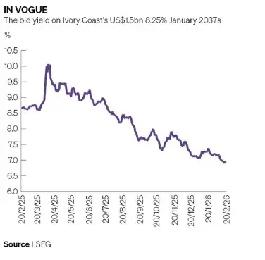 "Along with Benin and Nigeria, they are the most well liked" of the sub-Saharan Africa sovereigns, said a lead banker. That was evident in the deal, which saw orders peak at more than US$5.85bn after books opened at the 7.75% area.
