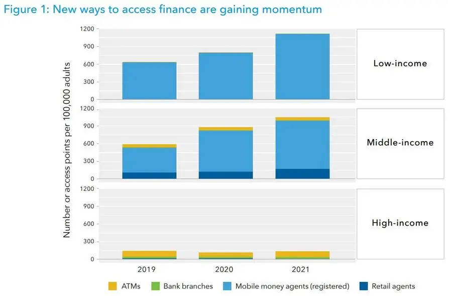 "[Data show] a transition from traditional financial access points such as bank branches and ATMs to mobile agents and retail agent outlets in some developing economies since the onset of the COVID-19 pandemic."