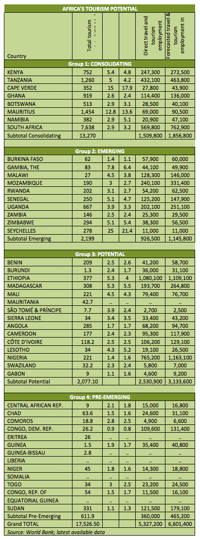 "Tourism could potentially create millions of jobs, among other economic benefits, if it is developed successfully," said the bank.