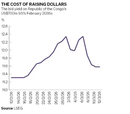 In February, in its first public issuance in US dollars, Republic of the Congo (Caa2/CCC+/CCC+) priced a US$700m 9.50% February 2035 amortising note at a yield of 11.625%.
