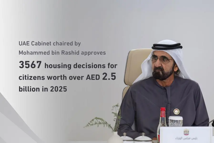 The UAE Cabinet, chaired by His Highness Sheikh Mohammed bin Rashid Al Maktoum, Vice President and Prime Minister of the UAE and Ruler of Dubai, has approved 3,567 housing decisions for Emirati citizens with a total value of AED2.546 billion during 2025, including 599 new decisions issued in the fourth quarter of the year valued at AED478 million.