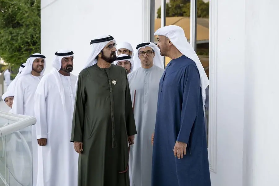 The meeting was attended by H.H. Sheikh Khaled bin Mohamed bin Zayed Al Nahyan, Crown Prince of Abu Dhabi; H.H. Sheikh Hamdan bin Zayed Al Nahyan, Ruler’s Representative in Al Dhafra Region; H.H. Sheikh Saif bin Mohamed Al Nahyan; H.H. Sheikh Surour bin Mohamed Al Nahyan; Lt. General H.H. Sheikh Saif bin Zayed Al Nahyan, Deputy Prime Minister and Minister of the Interior; H.H. Sheikh Hamed bin Zayed Al Nahyan; H.H. Sheikh Khalid bin Zayed Al Nahyan, Chairman of Zayed Higher Organisation for People of Determination; H.H. Sheikh Dr. Sultan bin Khalifa Al Nahyan, Adviser to the UAE President; H.H. Sheikh Theyab bin Mohamed bin Zayed Al Nahyan, Deputy Chairman of the Presidential Court for Development and Fallen Heroes' Affairs; H.H. Sheikh Hamdan bin Mohamed bin Zayed Al Nahyan, Deputy Chairman of the Presidential Court for Special Affairs; H.H. Sheikh Zayed bin Mohamed bin Zayed Al Nahyan; H.H. Sheikh Ahmed bin Saeed Al Maktoum, Chairman of Dubai Civil Aviation Authority, Chairman of Dubai Airports and Chairman and Chief Executive of Emirates Airline and Group; Sheikh Nahyan bin Mubarak Al Nahyan, Minister of Tolerance and Coexistence; and Sheikh Mohammed bin Hamad bin Tahnoun Al Nahyan, Adviser to the UAE President; along with several sheikhs, senior officials, guests and Emirati citizens.