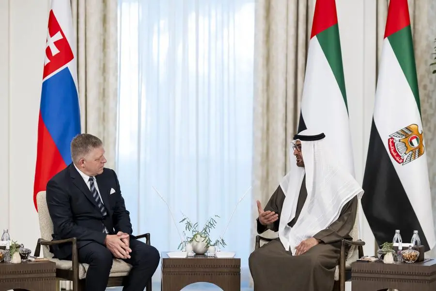 UAE President His Highness Sheikh Mohamed bin Zayed Al Nahyan and His Excellency Robert Fico, Prime Minister of the Slovak Republic, held talks today to explore ways to strengthen bilateral cooperation and expand prospects for development, particularly in areas such as the economy, trade, renewable energy, innovation, future technologies, and culture.