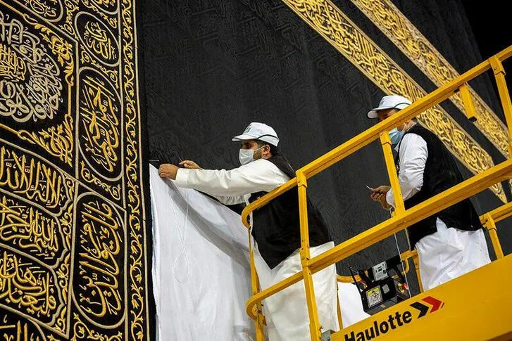 This yearly tradition is aimed at protecting the cloth from pilgrims as they perform tawaf and to preserve the silk threads from friction, with the lifting a symbol to start Hajj.