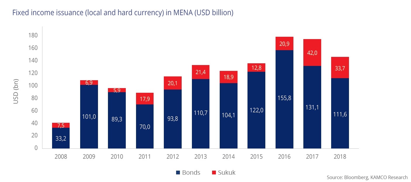 The amount of U.S, dollar-denominated bonds and sukuk issued in the Middle East and North Africa (MENA) is likely to reach $80-$85 billion in 2019 - similar to the $84 billion of issuance recorded last year, according to a new study, but there is potential for this figure to climb higher if Saudi Aramco embarks on its anticipated journey into debt capital markets with a maiden $10 billion bond issuance.