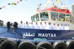 The €4,150,000 (AED 17.09 million)-tug boat 'MAQTAA' has up to 15 tonne marine crane capacity and three-wire drum winches for anchor handling and towage operations of barges. 'MAQTAA' will provide towing service and assistance to vessels for berthing and unberthing, along with anchor handling. Additionally, it offers maintenance service for Aids to Navigation (AtoN), such as buoys and beacons.