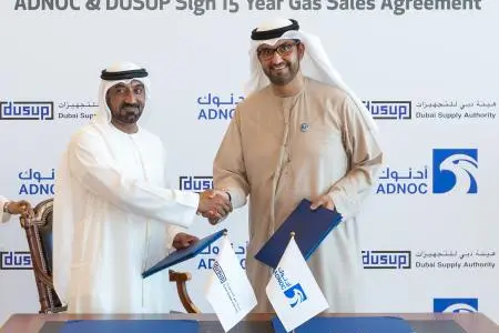 Abu Dhabi, UAE : The Abu Dhabi National Oil Company (ADNOC) signed, today, a 15-years gas sales agreement with the Dubai Supply Authority (DUSUP) for the supply of Natural Gas, to help meet Dubai’s energy needs.