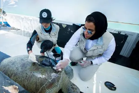 Before releasing the turtles, Al Mubarak attached a satellite transmitter to each of them and obtained tissue samples (DNA), which will then be analysed to better understand the feeding and nesting turtle populations of Abu Dhabi.