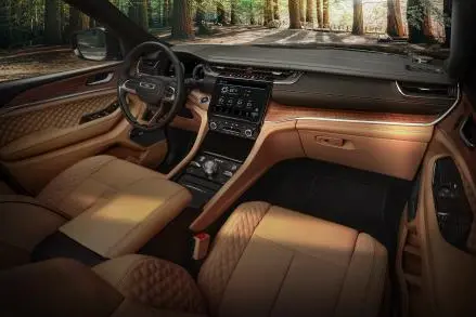 For each trim level, the interior of the Jeep Grand Cherokee L has been carefully crafted and tailored to deliver a truly unique expression. Structural accents accentuate dimension and symmetry. The instrument panel has been proportioned and angled to create spaciousness that is celebrated through an expressive contrast of warm authentic materials and sleek modern technologies, including 10-inch digital display screens, one that houses the new five-times-faster Uconnect 5 system.