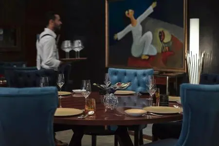 Boldly different and truly exclusive in its design, guests entering Mahonia are stunned by the outstanding décor. Chic Bohemian chandeliers hang from above, illuminating the restaurant stylishly decorated with bespoke furniture. Carefully curated priceless, original artworks adorn the walls; and flawless Murano sculptures and Baccarat vases add decadent touches to the décor.