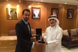 On this occasion, Mr. Mohammed Ahmed Janahi, BisB Acting Chief Executive, received Mr. Hassan Qambar, Manager, Banking Institutions of Banking Services at Chartered Bank, who presented him with the Bank's trophy and award letter.