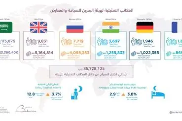 The Saudi Representative Office attracted 115,875 tourists whose combined spending total reached BD 23,360,400. KSA is considered one of the largest tourism markets. BTEA managed to collaborate with 150 Saudi travel agencies, as visitors from KSA comprise a huge portion of tourists in Bahrain and they include business and project owners whose businesses support the local GDP.